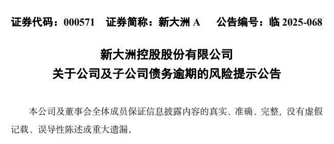 新大洲A在公告中明确提示两大核心风险:一是债务逾期问题突出;二是可能触及退市风险警示情形。